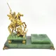 В состав набора входят изящная пепельница и настольная зажигалка, выполненные из натурального нефрита, обеспечивающего исключительную долговечность и благородный внешний вид. Скульптура Георгия Победоносца, выполненная из бронзы, покрыта золотом высшей пробы (толщиной 5мкм), что придает ей особую ценность и блеск.