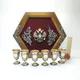 Представляем эксклюзивный набор стопок "Сочи" – воплощение роскоши и истории России. Каждый экземпляр, выполненный вручную, представляет собой настоящее произведение искусства. Стопки изготовлены из латуни, а их элегантный вид подчеркнут богатое чернение серебром, которое в сочетании с золотом высшей пробы создает поистине заворажиющий эффект.